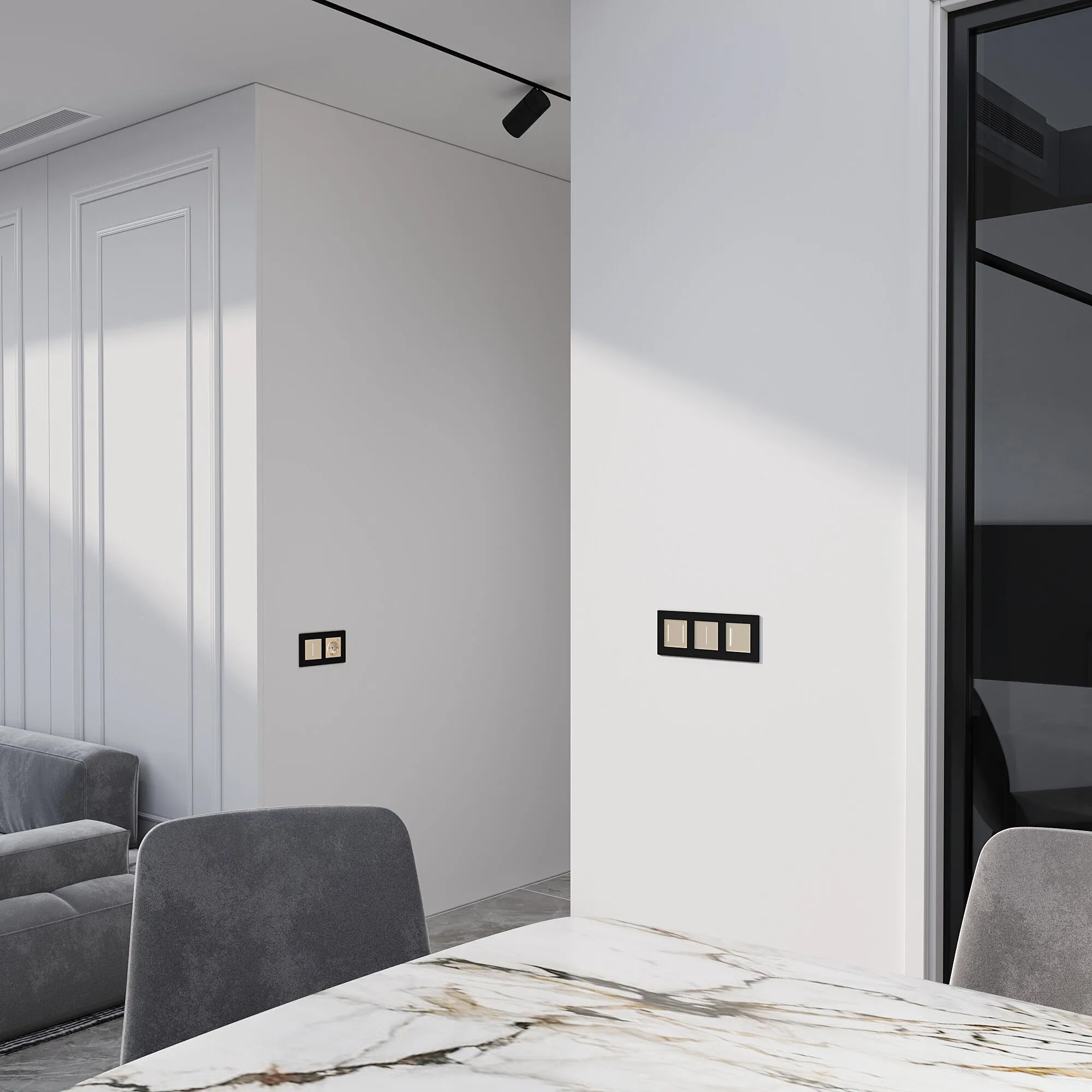 Благодаря интеллектуальной настройке в приложении, нет необходимости прокладывать дополнительные провода при создании проходных схем — всё регулируется программно.